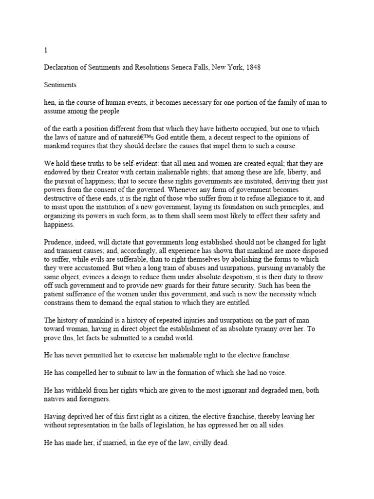 1 Declaration of Sentiments and Resolutions Seneca Falls New York